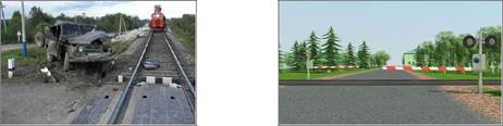 "Железнодорожный переезд" -пересечение дороги сжелезнодорожными путями на одном уровне.