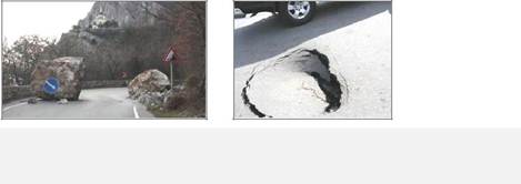 На картинке упавший из-за оползня на дорогу камень является препятствием, как впрочем, и яма на проезжей части.