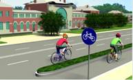А ) Велосипедист в красном, едущий по проезжей части дороги; Б) Велосипедист, едущий по велосипедной дорожке.