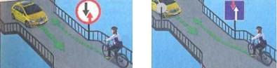 В случае установки этих знаков велосипедист должен подчиниться этим знакам независимо от того, на чьей стороне расположено препятствие.