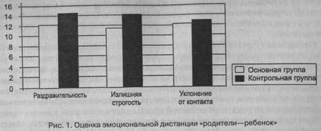 Психологические исследования семейных взаимоотношений осуществлялись с использованием методики «Pari», позволившей получить дополнительную информацию об особенностях семейного воспитания. Ее применение позволило выявить различия в оценках родителей основной и контрольной групп, касающихся эмоционального контакта и дистанции с ребенком, концентрации на ребенке и отношения к семейной роли.