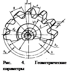 Изобразить рис.4 и написать название всех параметров цилиндрического эвольвентного колеса.