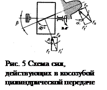 3.5. Определяем усилия в зубчатом зацеплении (рис. 5):