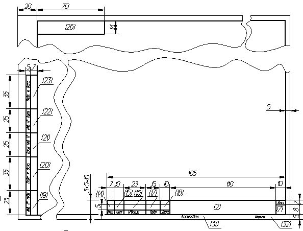 При конструировании нескольких шпоночных пазов на одном валу их располагают на одной образующей. Для разных ступеней одного и того же вала назначать одинаковые по сечению шпонки, исходя из ступени меньшего диаметра. Для соединений принимаем призматические шпонки (см. рис. 12, табл. 20).
