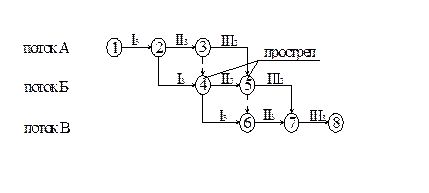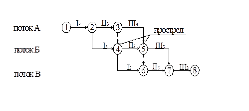 Для правильного отображения связей между работами вводят дополнительный узел. Узел – дополнительное событие, отделяющее начало работы на последующей захватке от окончания работы на данной захватке.