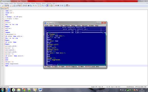 Я выбрала Паскаль как язык программирования.Вот мой код програмирования: