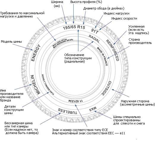 Автомобильные шины маркируются алфавитно-цифровым кодом, который обозначается на борту шины. Этот код определяет размеры шины и некоторые из ее ключевых характеристик, типа индикаторов нагрузки и скорости.