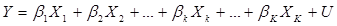 где Y – регрессанд, X1, X2, …, XК – регрессоры, U – случайные переменные.