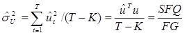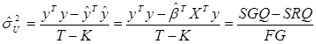 Важной характеристикой регрессионной модели является дисперсия возмущений . Ее величина должна быть как можно меньше. 1-МНК оценщик для можно вычислить по одной из формул: