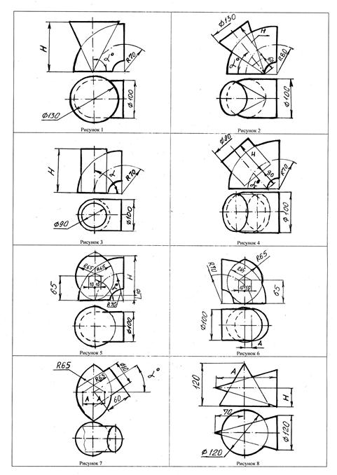6.1 Задание: в расчетно-графической работе №6 необходимо выполнить две задачи на построение линии пересечения поверхностей. Задачу №6.1 смотри в таблице 6.1, задачу №6.2 таблице 6.2, а варианты задания в таблице 6.3.