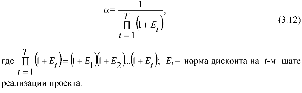 Дисконтирование денежных потоков при меняющейся во времени норме дисконта отличается, прежде всего, расчетной формулой для определения коэффициента дисконтирования. Коэффициент дисконтирования в данном случае определяется по формуле: