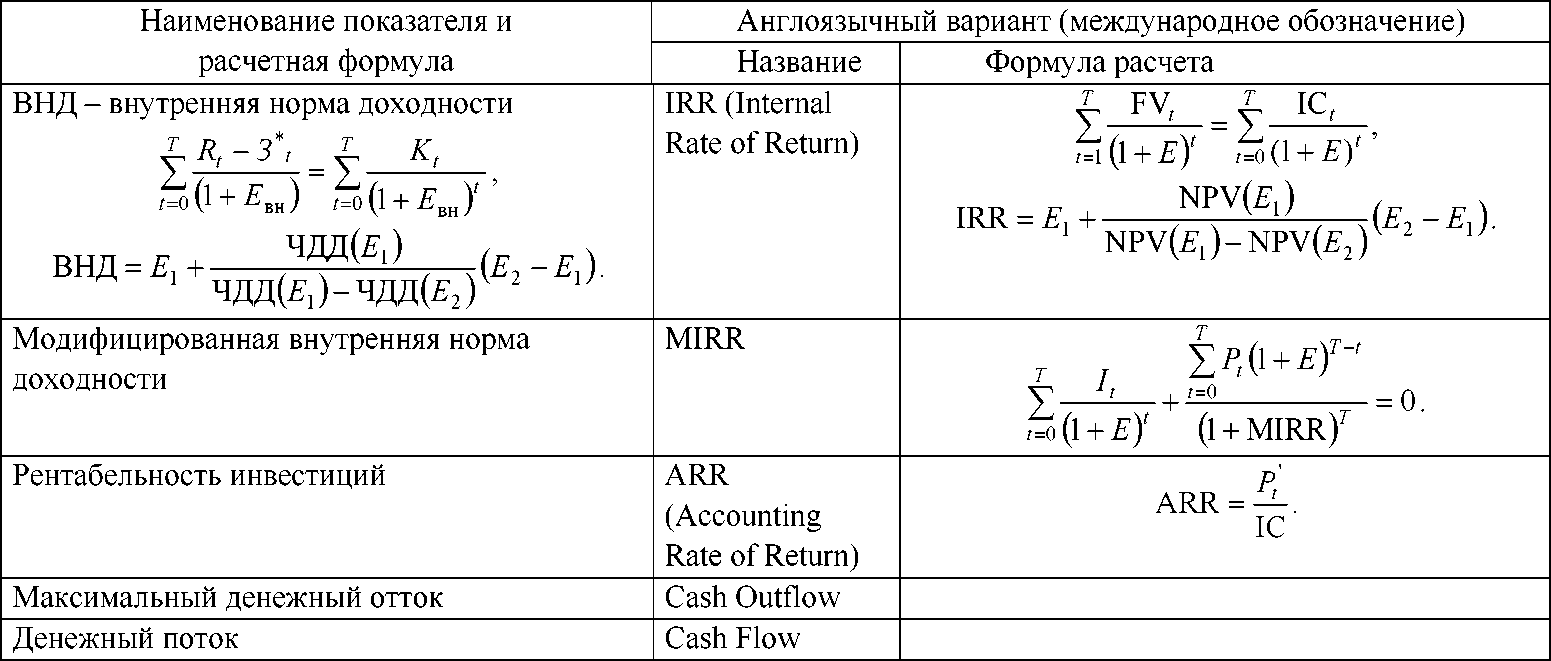 Необходимо отметить, что в учебной литературе наравне с показателями эффективности инвестиций, обозначенных буквами русского алфавита, используются показатели и обозначения, заимствованные из англий