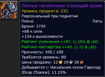 В этом инсте С босса Галдара дропаются Роговые Рукавицы. Добавят 38 к силе и 97 к выносливости.