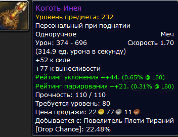 В Яме с Ика падает триня Гниющий палец Ика, С Гархлада дропаются Латные наплечники стынущей крови, а с Тирания падает меч Коготь Инея.