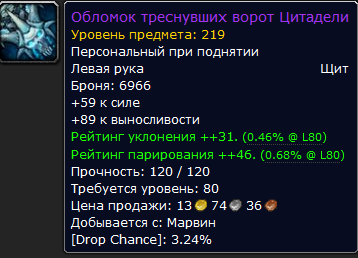 В Залах с босса Марвина есть возможность дропа щита Обломок треснувших ворот цитадели.