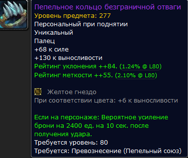 Прокачав репутацию с Пепельным союзом, вы сможете приобрести кольцо Пепельное кольцо безграничной отваги.