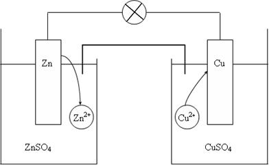 | Рис. 2. Схема медно-цинкового гальванического элемента |