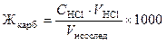 где С HCl — молярная концентрация эквивалента (нормальность) раствора соляной кислоты; V HCl — объем соляной кислоты, пошедший на титрование; V исслед — объем исследуемой воды; 1000 — коэффициент перехода от моль экв/л к ммоль экв/л.