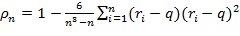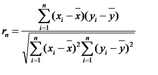 (i = 1,..., n) пар рангов вычисляется линейный коэффициент корреляции.