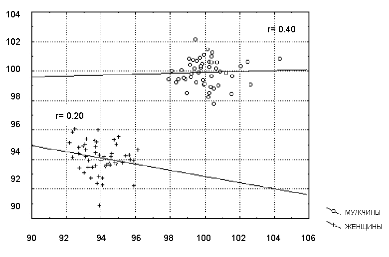 Рис. 6.9. Коэффициенты корреляции, полученные для каждой группы в отдельности [10]