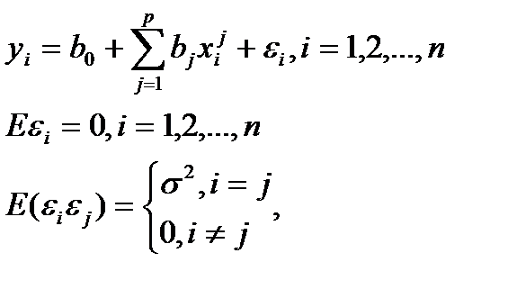 Таким образом, в рамках классической линейной модели множественной регрессии рассматриваются только линейные функции регрессии, где объясняющие переменные играют роль неслучайных параметров. Кроме того предполагается, что случайные регрессионные остатки взаимно некоррелированны и имеют постоянную дисперсию σ2. Независимость дисперсий остатков от значений объясняющих переменных называется гомоскедастичностью регрессионных остатков.
