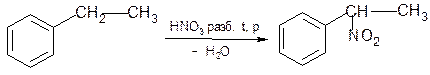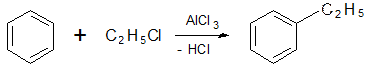 Пример 1. Приведите механизм реакции получения этилбензола по Фриделю-Крафтсу. Напишите схемы и назовите продукты взаимодействия этилбензола: а) с нитрующей смесью; б) с разб, HNO3 при нагревании и повышенном давлении. Приведите схему реакции, которой можно отличить этилбензол от бензола.