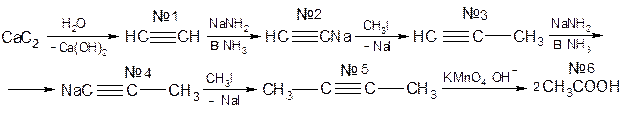 Реакции ацетилена и пропина с амидом натрия (NaNН2) указывают на проявление ими СН-кислотного характера.