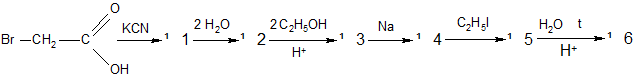 Какие свойства исходного вещества и продукта № 2 подтверждают их реакции с С2H5ONa? Под каким названием и с какой целью применяется в медицинской практике продукт №5?