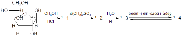 В формуле исходного вещества пронумеруйте атомы углерода и укажите: а) аномeрный атом углерода; б) полуацетальный гидроксил; в) фрагмент, обуславливающий принадлежность этой монозы к D-ряду.