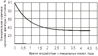 Деформация ползучести бетона, пропитанного нефтепродуктами (смазочные масла, мазут, дизельное топливо), под действием длительной нагрузкипри напряжениях 0,4–0,5 fcm меньше деформации непропитанного бетона в 4 раза и более. После удаления из бетона пропитывающих его нефтепродуктов деформации ползучести увеличиваются иногда до начальных, а прочность бетона восстанавливается лишь частично.