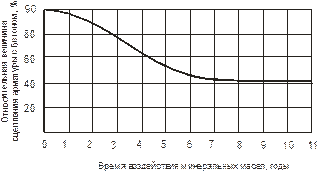 | Рисунок 5.19 – Зависимость сцепления арматуры периодического профиля с бетоном от времени воздействия минеральных масел |