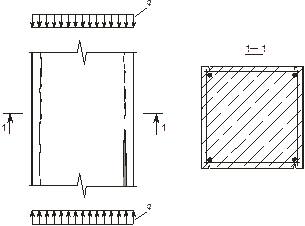 Трещины 1 возникают от перегрузки колонны по нормальному сечению, недостаточного количества рабочей продольной арматуры.