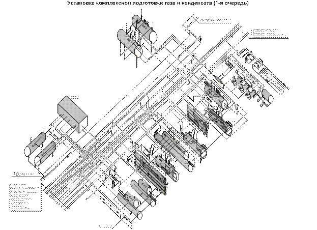 В состав установки подготовки газа входят: входные газосепараторы Сп-1 и Сп-2, газосепараторы первой ступени С-1.1 и С-1.2, теплообменники «газ-газ» Т-1.1 и Т-1.2, 2 узла эжектирования газа, низкотемпературные сепараторы С-2.1 и С-2.2, разделитель конденсата Р-1, узел технологического замера осушенного газа.