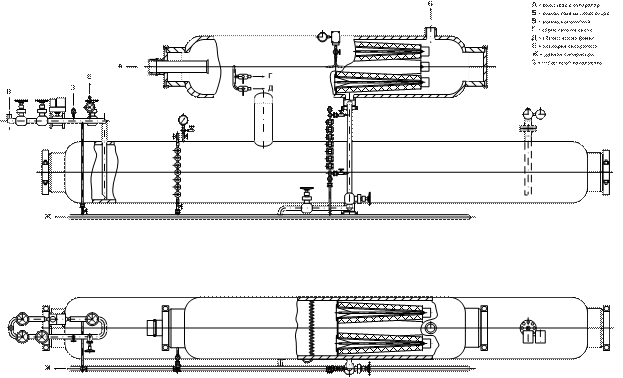 Конденсат уловленный в сепараторах Сп-1, С-1.1, Сп-2, С-1.2 и конденсат из ёмкости накопления конденсата С-2.1 и С-2.2 после снижения давления регуляторами с давлением 4.0 МПа поступают в разделитель Р-1 и Р-2 соответственно для разгазирования и разделения конденсата и конденсационной воды.