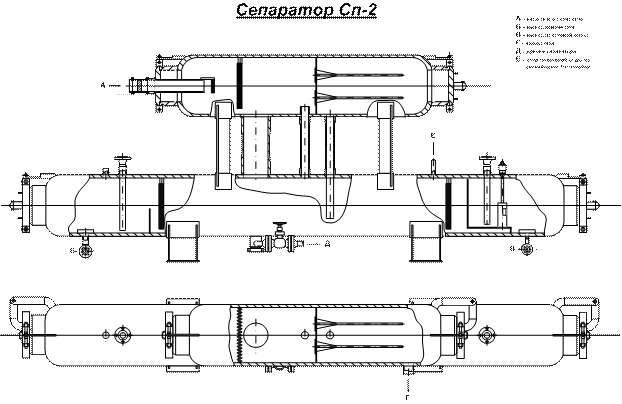Указанные сепараторы отличаются тем, что СП-1 является двухфазным, конденсат с водой поступает в Р-1, а СП-2 трехфазный, конденсат с водой разделяются, вода поступает в ЦРМ, конденсат в Р-2.