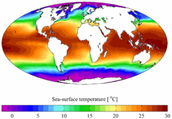 Рис. 9. Среднегодовая температура поверхности Мирового океана
