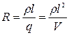 Представим сопротивление R прямолинейного отрезка проволоки длиной l c круглым поперечным сечением площадью q и удельным сопротивлением ρ в виде