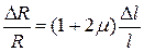 Учитывая, что q = πr2 и, следовательно, Δq/q = 2Δr/r = – 2μ Δl/l, получим