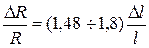 но опыт показал, что коэффициент связи ΔR/R с Δl/l бывает меньше 1,48 и больше 1,8.