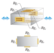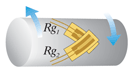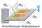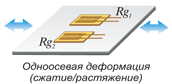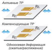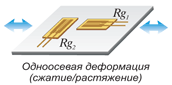 | 2 активных тензорезистора (для измерений изгибающих деформаций) Число тензорезисторов: 2 | | | e0 = (E /2)·Ks· ε0 Rg1.. деформация – ε0 Rg2.. деформация – - ε0 R – постоянное сопротивление |
