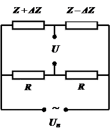 – напряжение питания моста; Z = Rк + jωL – комплексное сопротивление катушки (каждой из двух); Rк – её активное сопротивление; ω = 2πf – круговая частота и f – частота напряжений