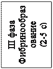 В третью фазу свертывания крови под влиянием тромбина происходит отщепление от фибриногена (ФI) фибринопептидных комплексов А и В с образованием фибрин-мономера, который полимеризуется, превращаясь в фибрин S (solubile) – растворимый. Под действием фибринстабилизирующего фактора ФXIII плазмы связи в фибрин-полимере становятся более прочными и образуется фибрин Is (insolubile - нерастворимый). Фибрин в виде рыхло или компактно расположенных нитей представляет собой основную массу красного тромба. В ячейках фибриновой сети находятся тромбоциты, лейкоциты, эритроциты, сыворотка.
