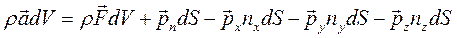 Запишем уравнение движения тетраэдра, которое в соответствии с общими законами механики должно иметь вид: