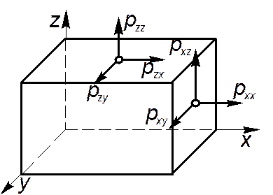 Из рисунка, в частности, видно, что напряжения с одинаковыми индексами являются нормальными, а с разными - касательными. В проекциях на декартовы оси координат выражение (2.9) может быть записано как