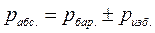 должен выражаться в единицах давления, т.е. в паскалях (Па - Н/м2). Эту величину называют избыточным давлением. Она может быть как положительной, так и отрицательной. Такая трактовка приводит нас к понятию абсолютного давления, которое в соответствии с (3.11) может быть представлено как сумма барометрического (атмосферного) давления и избыточного, т.е.