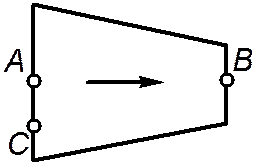 В этих формулировках следует обратить внимание на то, что речь идет о параметрах в точке. Чтобы уяснить это, рассмотрим канал, показанный на рис. 4.1. В гидромеханике такие каналы, в которых площадь сечения уменьшается по ходу потока, называют конфузорами. Исходя из чисто интуитивных представлений ясно, что скорость течения по ходу канала будет возрастать. Возникает вопрос, может ли быть установившемся движение в таком канале. Очевидно, может, если параметры в точках A и B не будут изменяться с течением времени. Определение вида движения не требует, чтобы параметры в точках А, В и С были одинаковы.