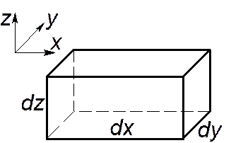 Рассмотрим жидкую частицу в форме прямоугольного параллелепипеда (рис. 4.5). Длина его ребер dx, dy, dz. Деформация такой жидкой частицы может быть как линейной (ребра удлиняются и укорачиваются), так и угловой (грани скашиваются). Удобней рассмотреть каждый из этих видов раздельно. Начнем с угловых деформаций.