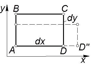 Очевидно, что линейные деформации частицы (рис. 4.8) могут возникнуть в результате различия в скоростях, совпадающих с направлением ребер. Как и ранее, компоненты скорости в точке A -