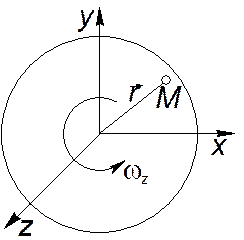 Пусть жидкая частица вращается вокруг оси z с угловой скоростью