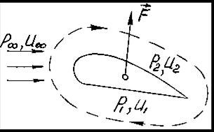 Рассмотрим крыловой профиль, находящийся в потоке газа (воздуха). Как известно, на профиль в этом случае будет действовать подъемная сила (см. рис. 5.3). Физически наличие этой силы можно объяснить лишь тем, что давление под профилем (